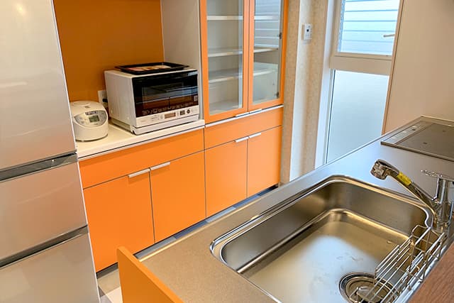 2LDK のマンションでゆったりとご宿泊ください。キッチンには調理器具一式と食器が揃っておりますのでご自由にお使いください。4 名様までのグループでシェアもできます。