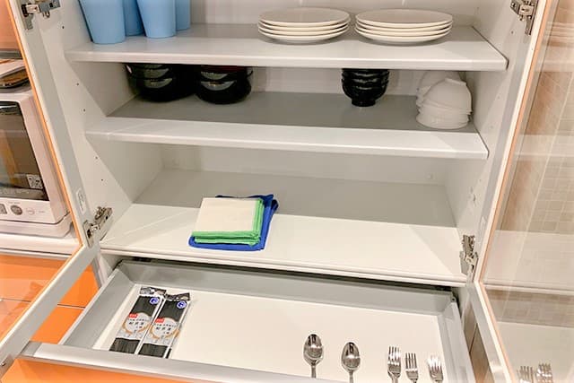 食事は隣接の琴弾廻廊でお楽しみいただけます。また共同のキッチンには調理器具一式が揃っておりますので、料理の腕を振るうことも出来ます。