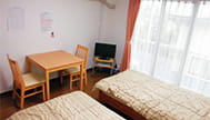 男女合同寮で、学校から徒歩2分の好立地!教習の空き時間もお部屋でくつろげる便利さ。無線LAN(要パソコン)、DVD、麻雀卓、バスケットコート(ハーフ)もあり余暇も充実。学校隣のテニスコートへもすぐに行けて使い放題なのも魅力です。グループ・団体様にもおすすめです